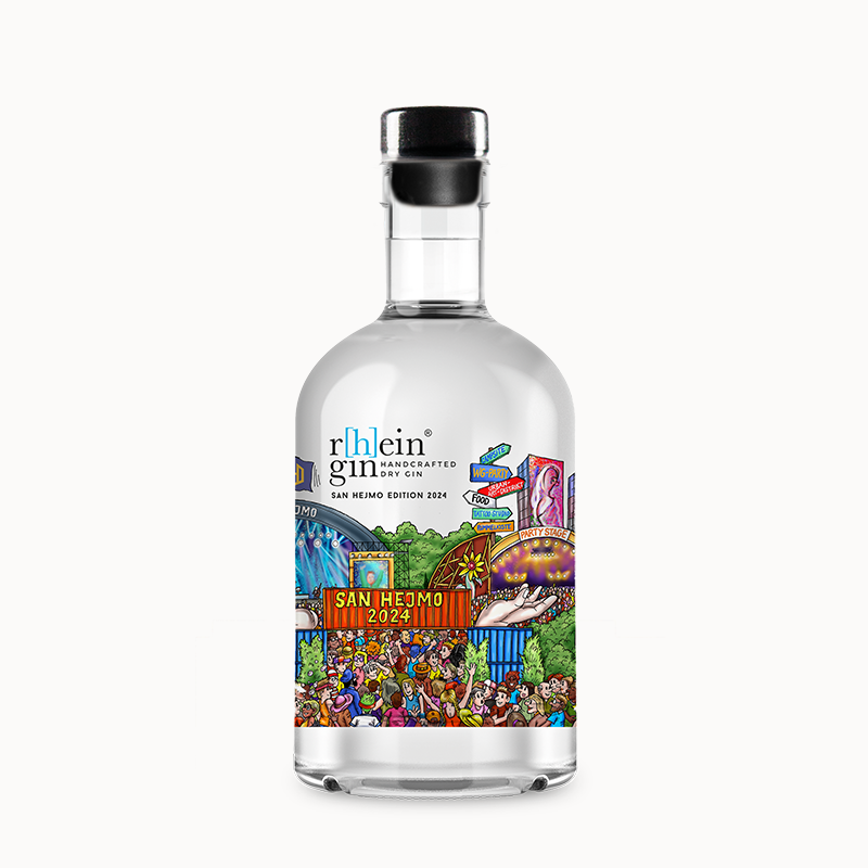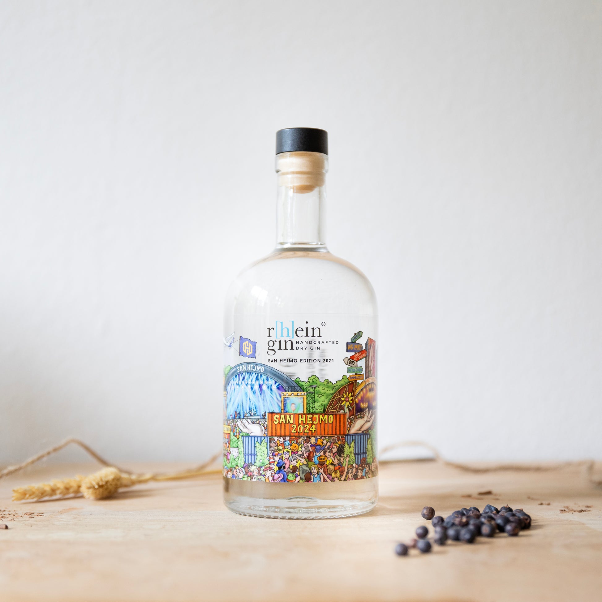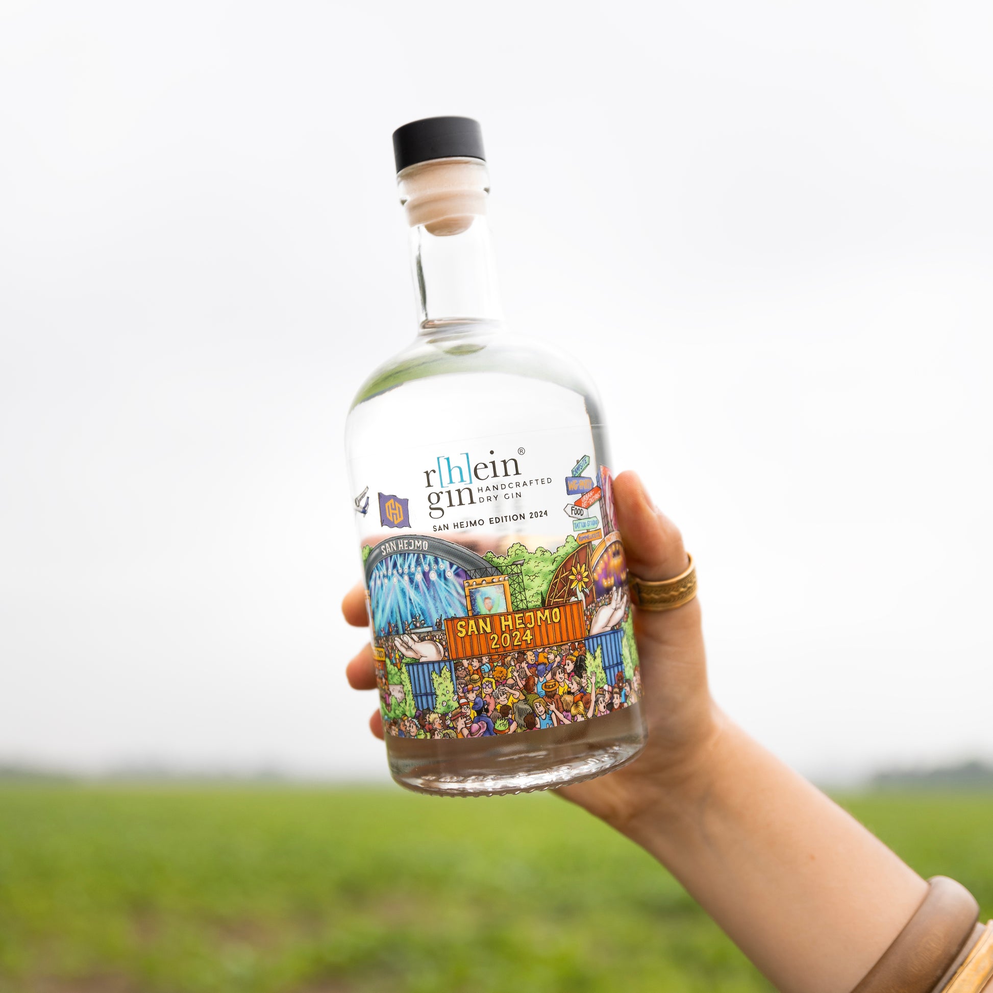 Für das San Hejmo und unseren Gin-Truck dort, haben wir gemeinsam mit dem San Hejmo haben wir die limitierte r[h]eingin San Hejmo Edition 2024 auf den Markt gebracht. Unserer r[h]eingin präsentiert sich hier in der bekannten Qualität mit purem Wacholder und kein ChiChi!